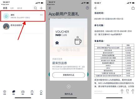 【蔚来新用户抽免费实物盲盒】没参与过的上!注册登录“蔚来”APP->底部“朋友”进入“通知”抽盲盒,只有抽中免费实物或饮品券才有用
