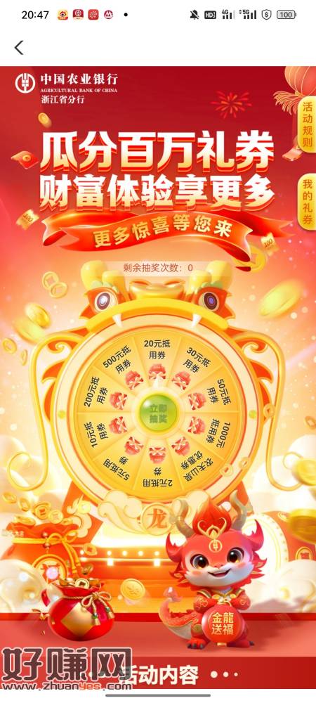 浙江农行每周抽奖,城市专区,瓜分礼券,必中2以上,中了买10