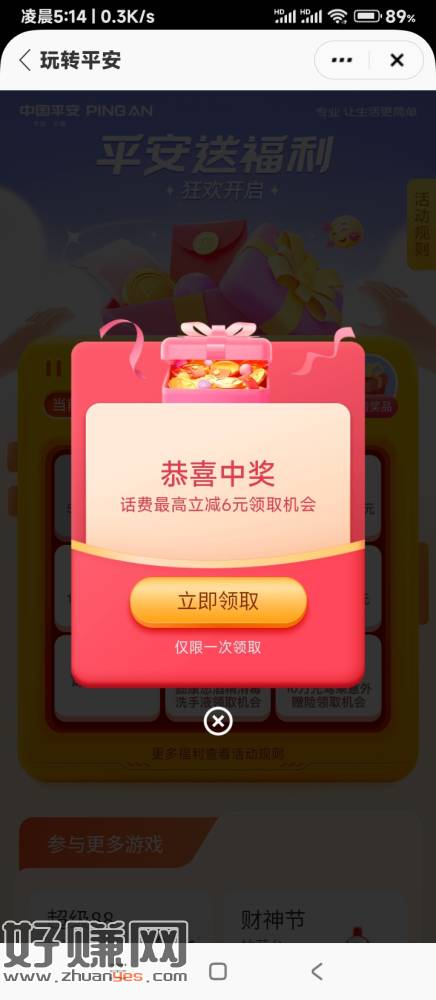 ④首页下拉下方,玩转平安,抽奖