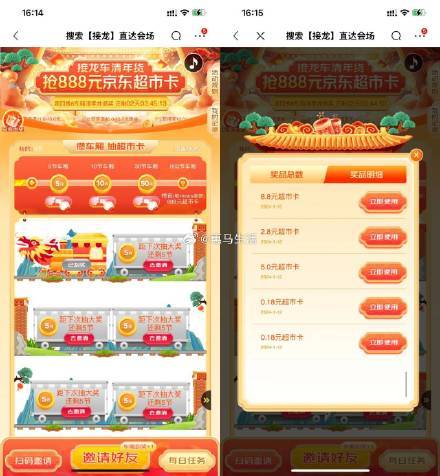 京东接龙抽0.1~888元超市卡