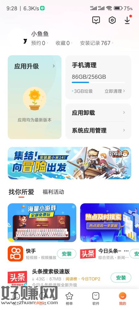 小米应用商店-我的-冒险岛横幅 10点开服登录
