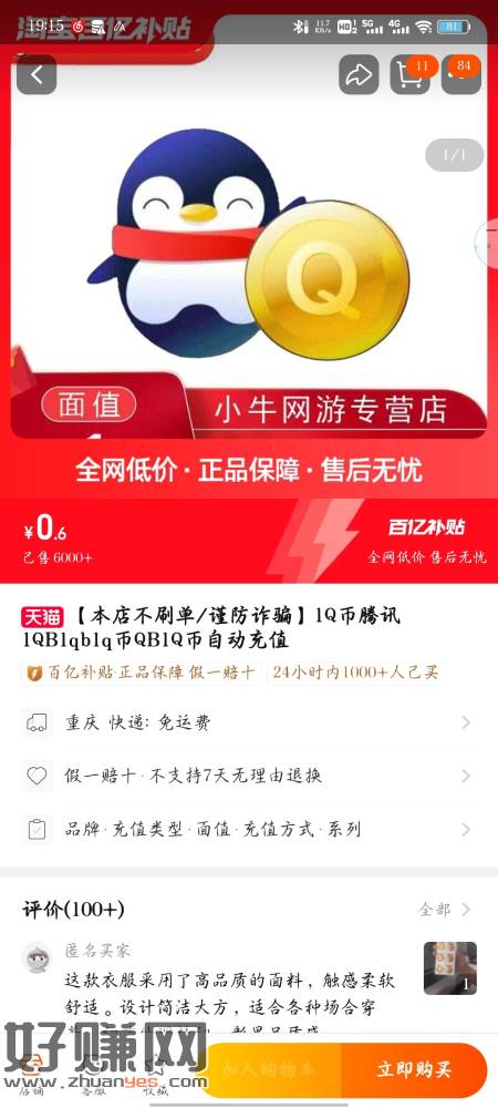 CZ0001 「【本店不刷单/谨防诈骗】1Q币腾讯1QB1qb1q币QB1Q币自动充值」