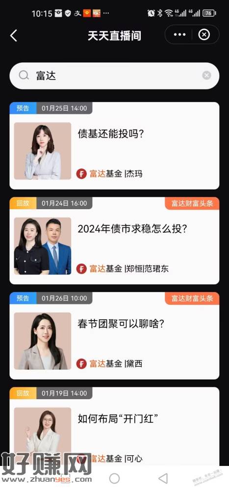 天天基金 搜索直播 然后在直播里面在搜索富达