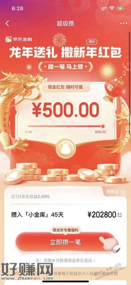 京东金融app,存一千万理财给 8.5万支付券,自测