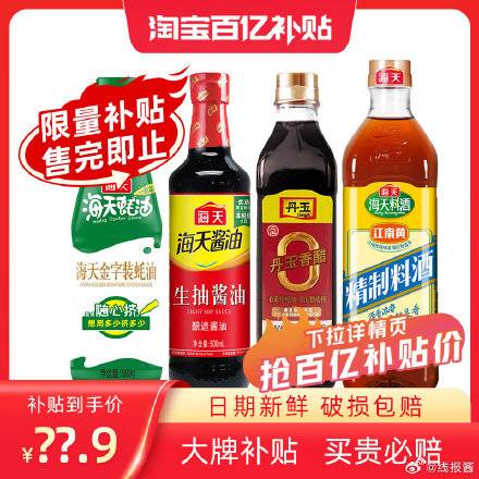 百亿14.9亓, ,海天官旗调味料组合4瓶!