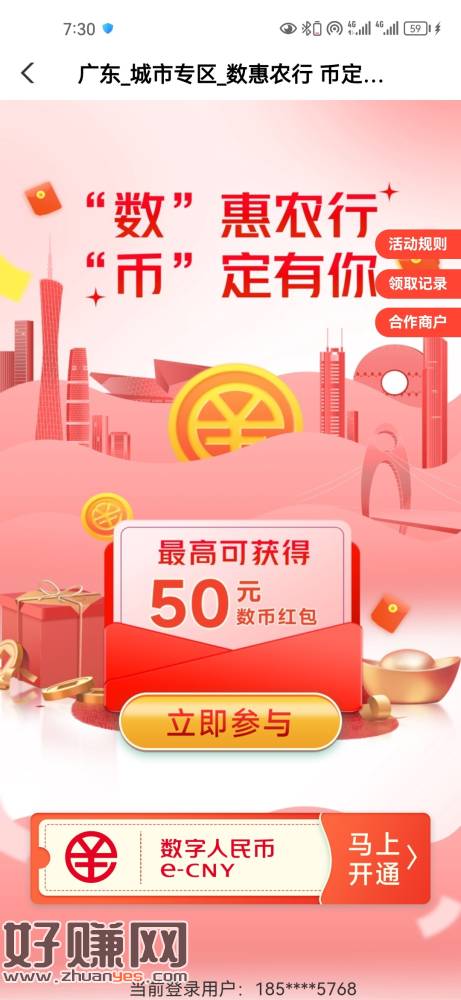 农行,城市专区,广东。支付1元得随机数币,秒退款