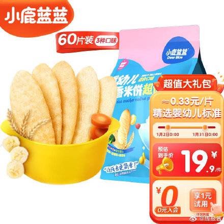 19.9元,小鹿蓝蓝 磨牙米饼加量装120g