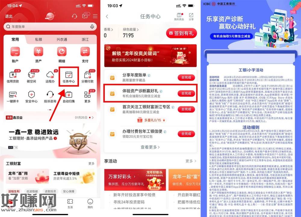 工行APP搜索“任务中心”->体验资产诊断->目前基本必中5亓微信立减金