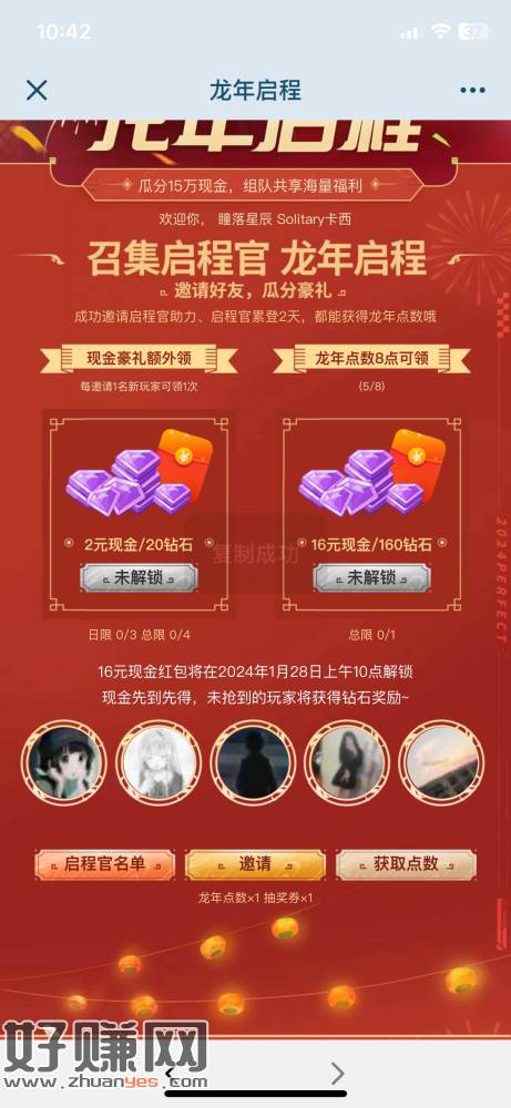 QQ炫舞今日拉完为5个龙年点数,明天再登陆己拉号领龙年点数,《注看拉人规则》然后10:00抢16