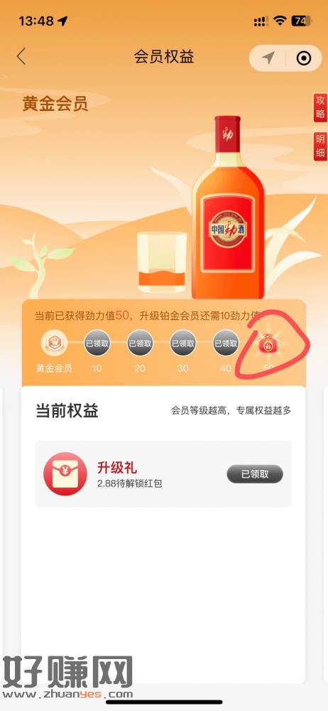 劲酒有码的去现在必赚只要不是废太多,5次拉满,扫一个码去首页领黄金升级礼2.88待解锁,再扫一个去首页领20劲力值的礼袋也是2.88待解锁,拉满5个首页有个礼袋是3.88待解锁,明天再拉一个得铂金5.88的待解锁,后面奖励自己看,会定位的定吉林扫码还有小包,目前我最大的是1.99
