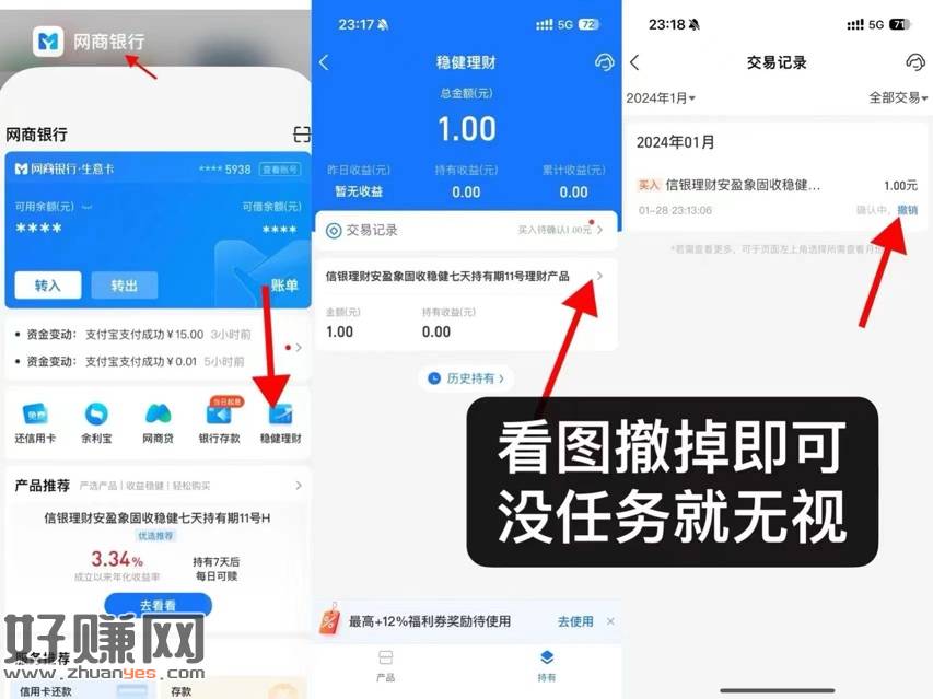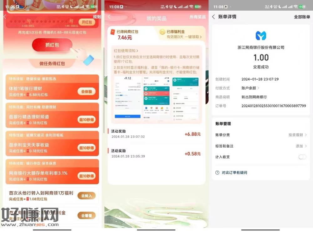 zfb搜发发日,有一个6.88理财任务,买一个,再撤就行 要去网商银行app才能赎回 深圳通可以t