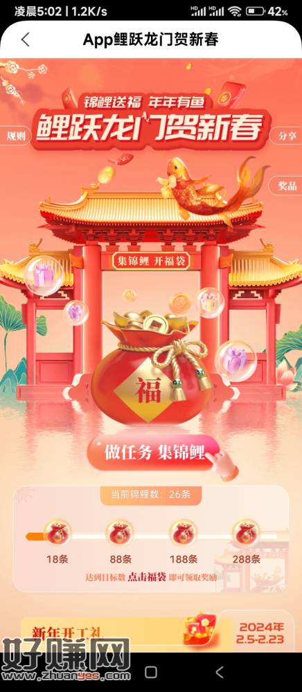 南京银行APP最新版,首页右边浮窗进入,浏览任务(不用真的浏览,秒返回),集18条锦鲤,抽10e卡