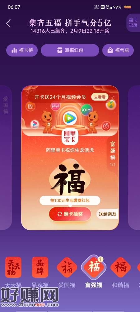 支付宝搜五福集齐五福 然后等开奖