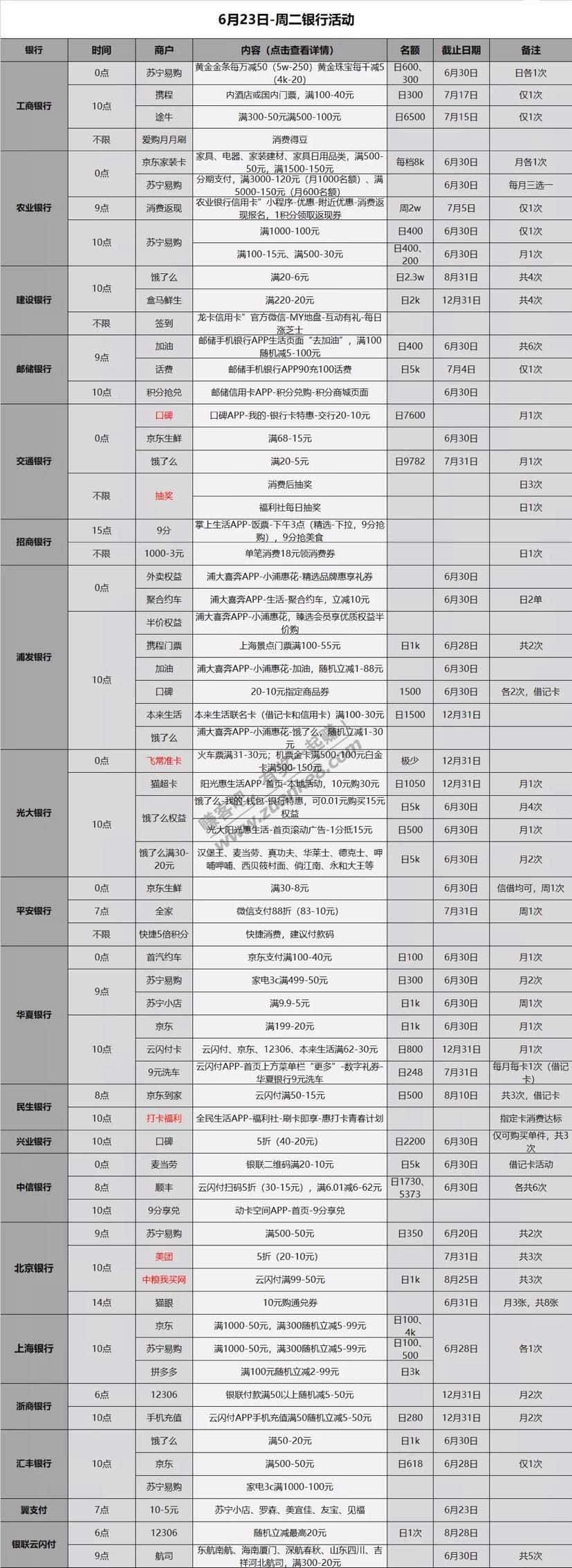 6.23各大银行薅羊毛活动