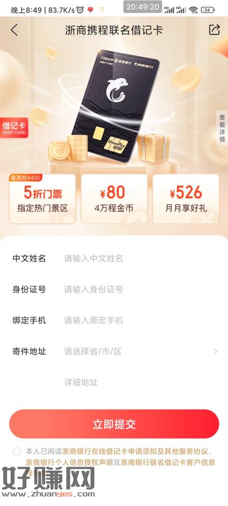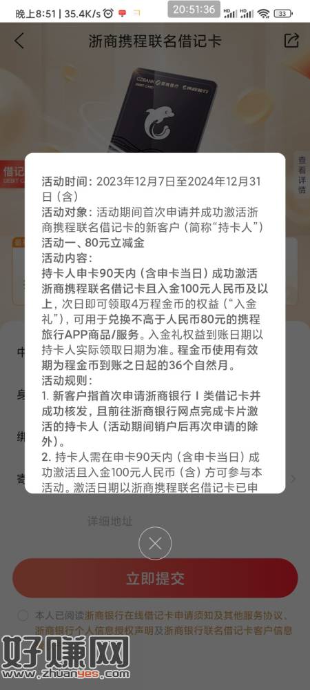80e卡 携程旅行搜浙商携程联名借记卡 申请 然后网点激活