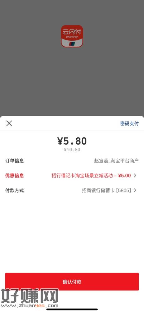 淘宝 跳云闪付 招商10-5 我买的E卡