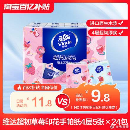 9.8 维达手帕纸24包 ,14.9 清风云柔卷纸12卷