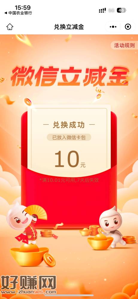 [ 中国农业银行 ]10元微信立减金等您领取,年关将至,诚邀您参