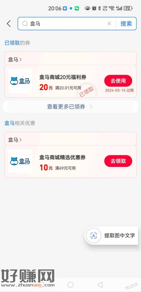 支付宝搜消费券,然后搜盒马,领20.1-20