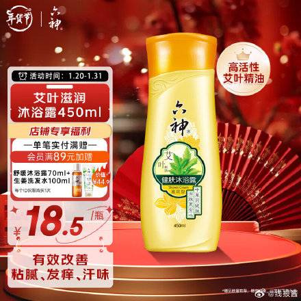 六神艾叶滋润沐浴露450ml,Plus 3.68元