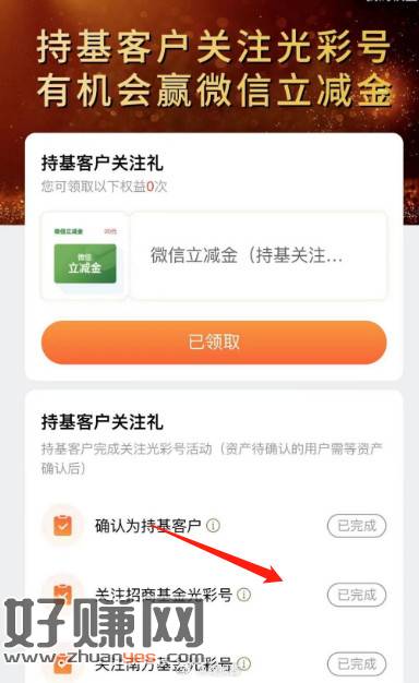 光大20立减金,进去买一元基金,再返回关注两个号,