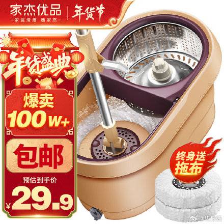 29.9元,家杰优品 免手洗旋转拖把+2拖布
