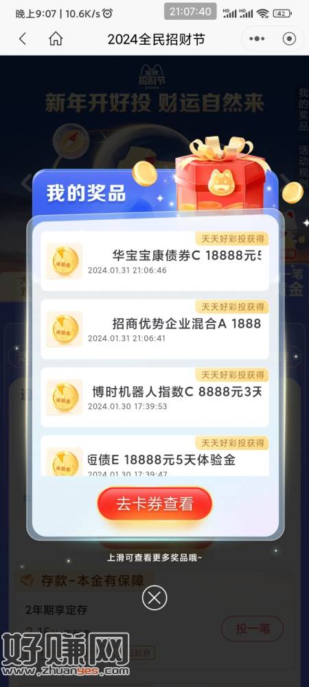 1.11-2.14 每天坚持领2张招行体验金 直接搜全民就行
