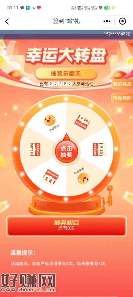 河南郑州每天签到抽一次 可以抽7次 限卡
