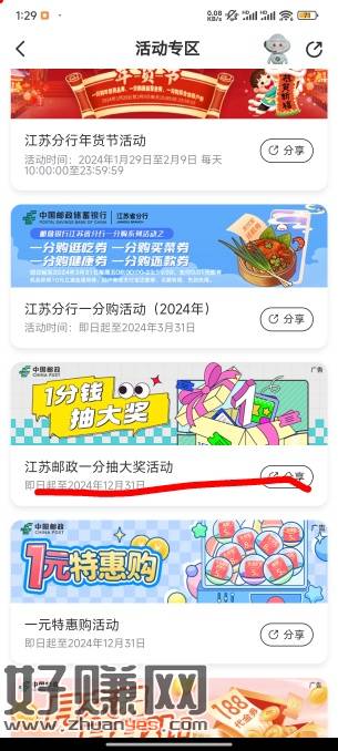 邮储活动专区转无锡,一分钱抽奖