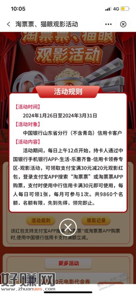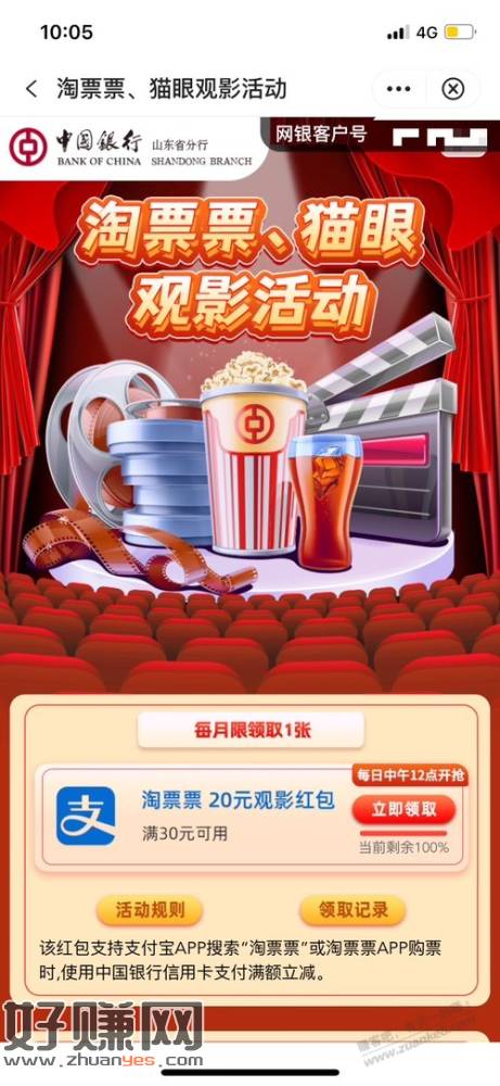 山东中行xyk30-20电影卷又能领了