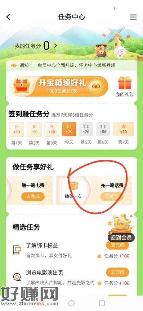 建行 我的 任务中心 充话费100元,抽中20E卡,100
