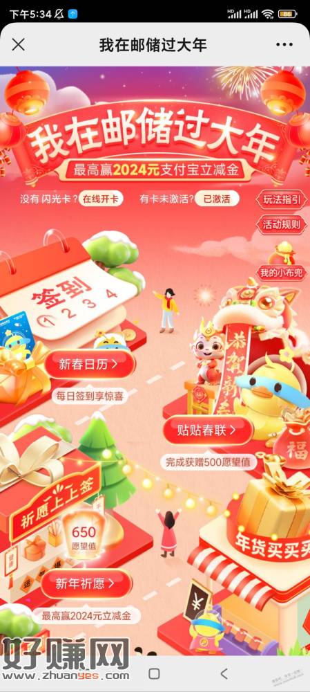 路径 邮政联名卡公众号最右第一个活动 过大年