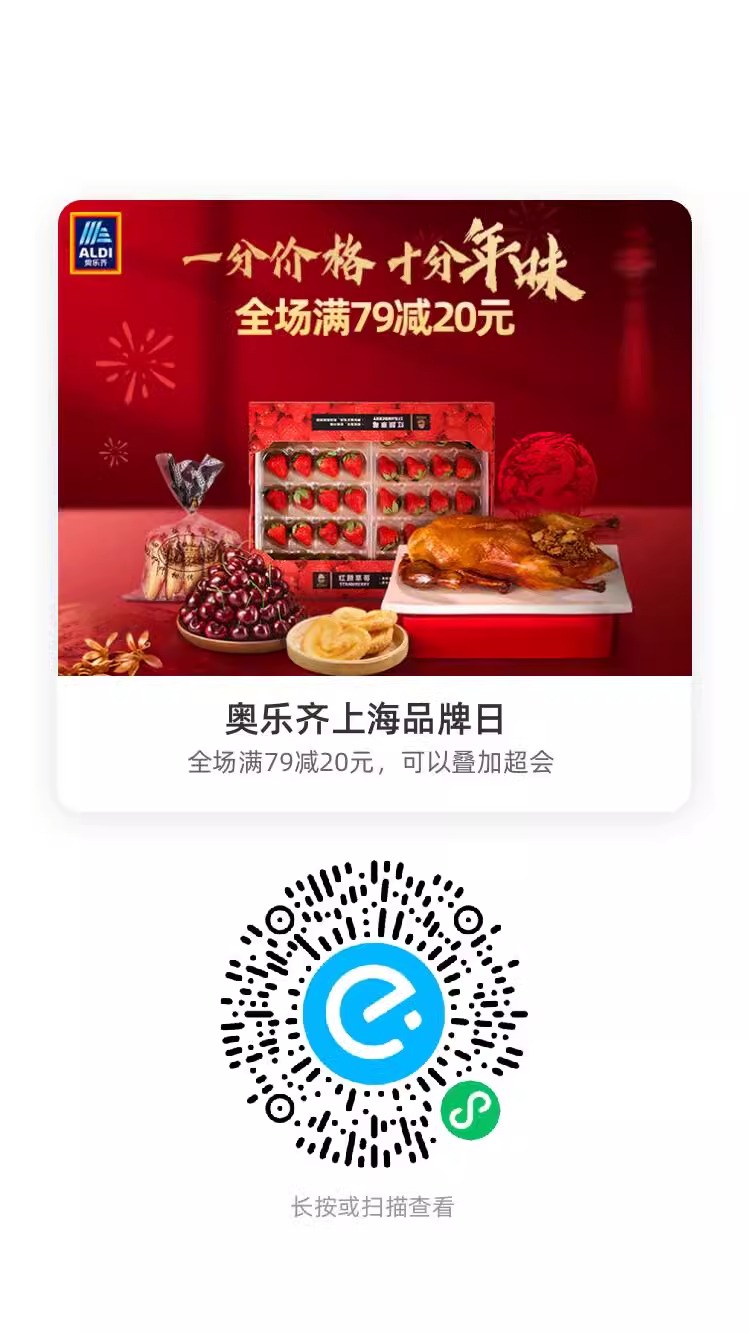 上海地区,饿了么奥乐齐有79-20可以叠加会员