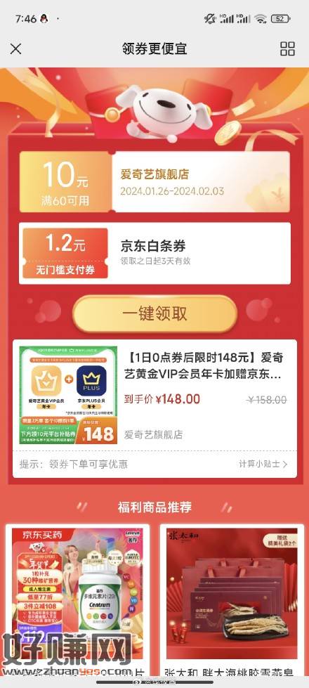 148元,爱奇艺黄金年卡+京东PLUS会员年卡