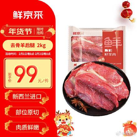 99 鲜京采新西兰原切去骨羊后腿肉2kg