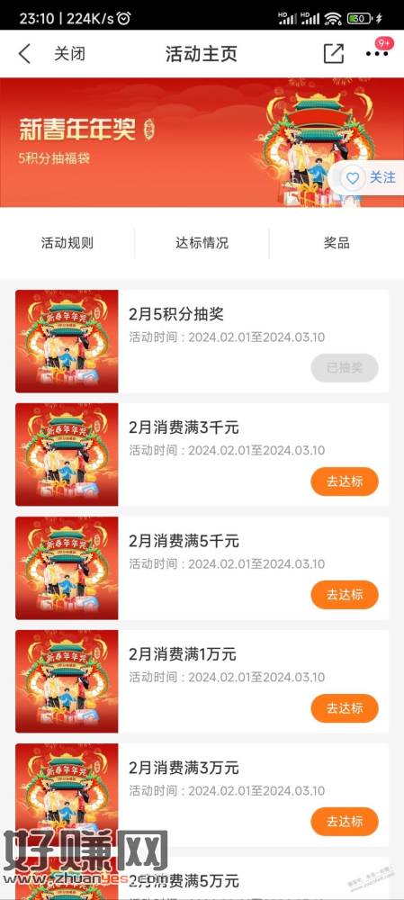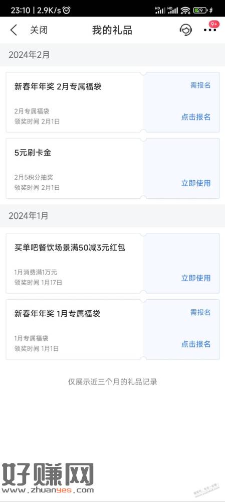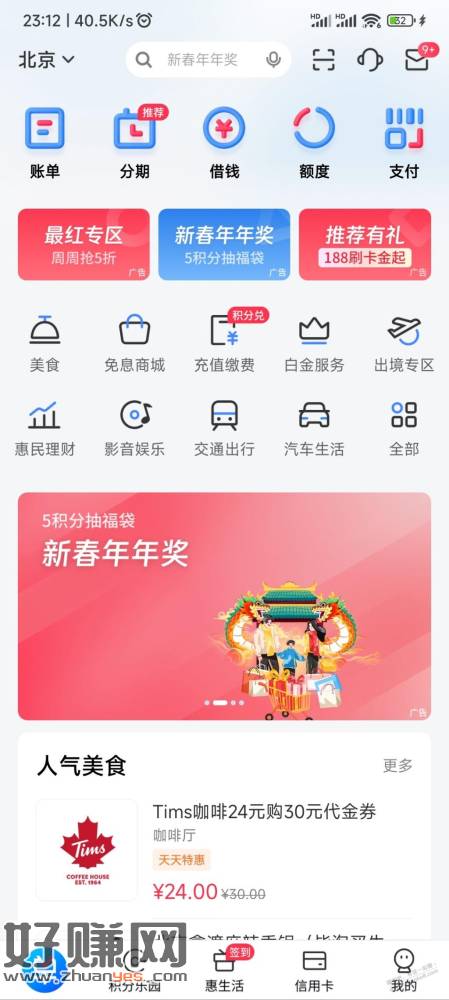 买单吧2月5积分抽奖中了5刷卡金