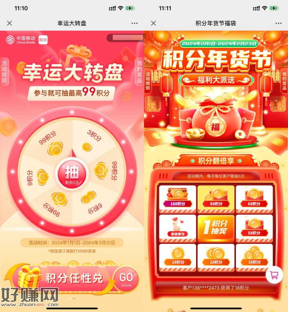【和包年货转盘抽多个商城积分】依次打开活动直接抽就行,活动1和活动2可抽3次