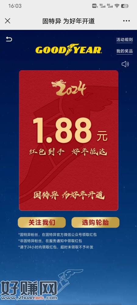 vx公众号 GOODYEAR固特异轮胎 右下 新年福利 水