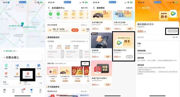 高德地图app-打车-福利中心-里程兑换-下拉688里程换腾讯视频月卡(授权腾讯视频领取 不是直充 可以借号撸)