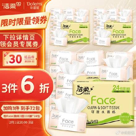 洁柔 抽纸 柔韧粉Face110抽*24 (195