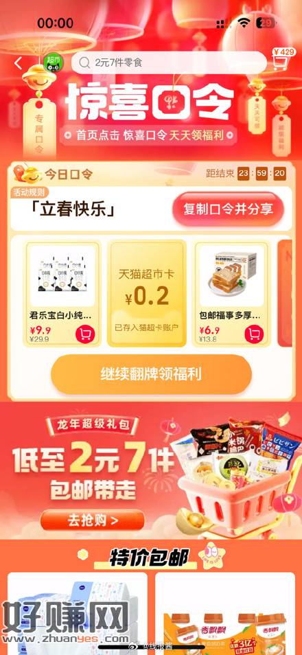 今日猫超右下惊喜口令【立春快乐】翻牌领猫超卡和超值商品❗️朋友们立春快乐✨