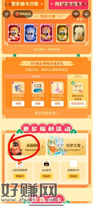 qq的王者每天去抽,皮肤可以卖,不是随机的中,开奖是可以从已有的卡选皮肤奖励