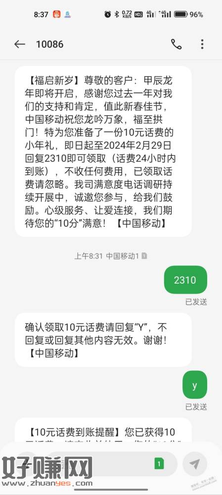 移动10元话费,自测