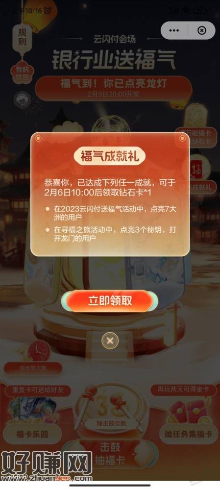 符合条件的去集卡首页领钻石,右上福气礼