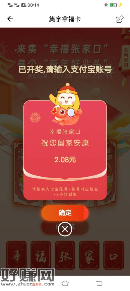 下载幸福张家口,首页集卡,集齐1-10元,每天五次集卡机会,