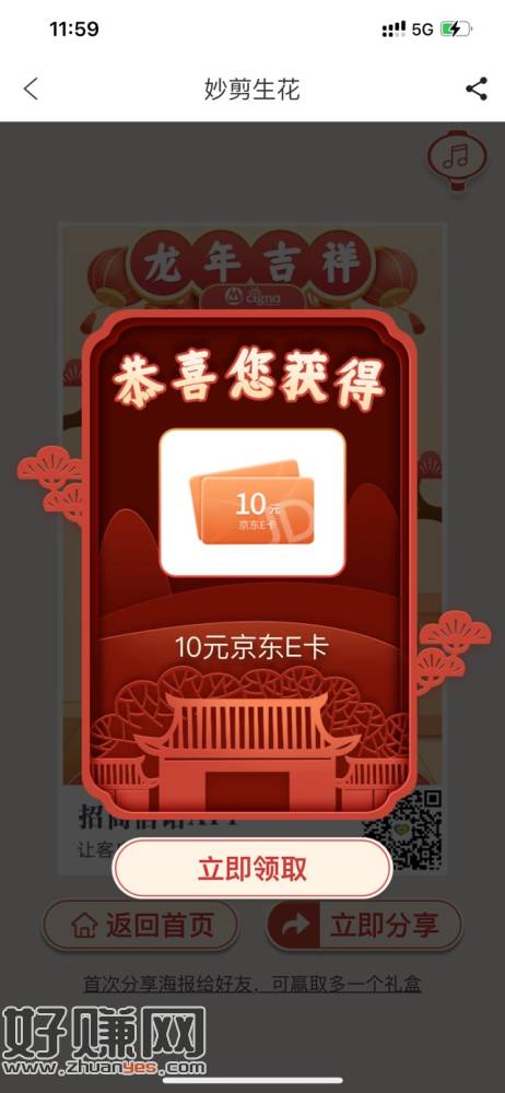 招商信诺APP-弹窗妙剪生花-分享多抽一次