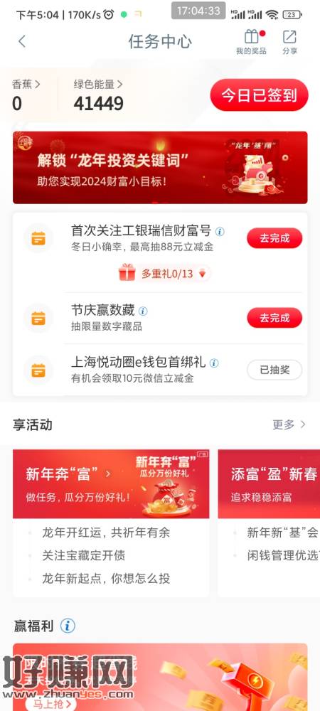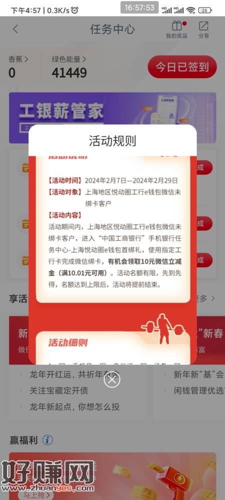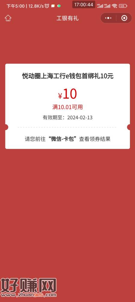 10立减金 去年11月开过上海工行电子卡的 进任务中心看看有