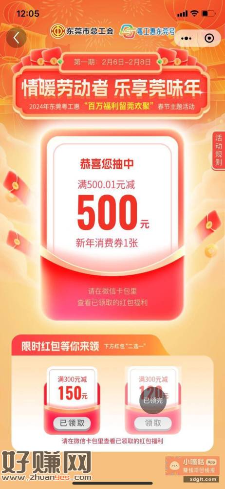 东莞第二轮卷 上次领过-150/-120还能领 没中500大