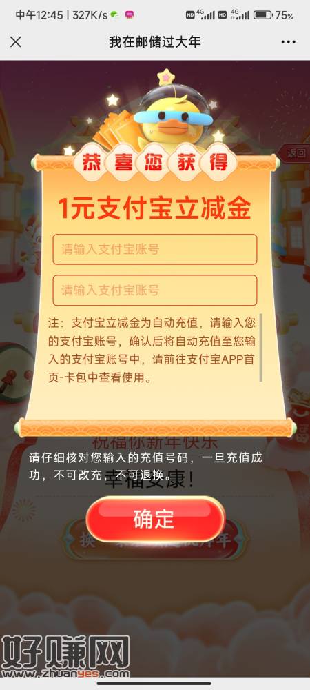 邮储联名卡,公众号,右下角,我在邮储过大年,签到,串门互,一