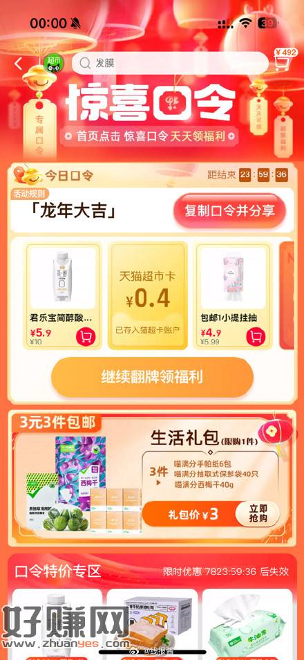????今日猫超右下惊喜口令输入[ 龙年大吉 ]翻牌就有猫超